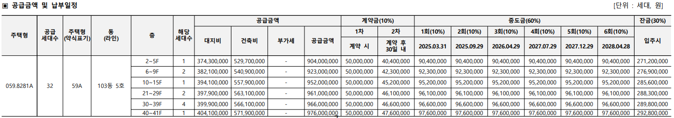 ✅ 아파트 분양 청약 공급 금액 분양가 납부 비율